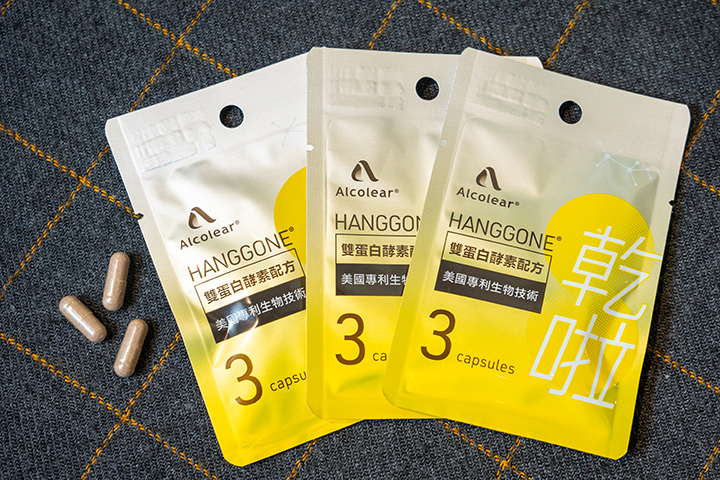 黃博士與團隊後續專注於雙酶研究,讓研究成果有機會應用於日常生活。他們成功萃取ADH(酒精脫氫酶)與 ALDH(乙醛脫氫酶),製成雙酶蛋白配方,並封裝於膠囊,且取得三項美國專利。最終,將這項成果商品化,推出乾啦®雙蛋白酵素膠囊,展現將科學知識轉化為產業應用並改善人們健康困擾的實例。