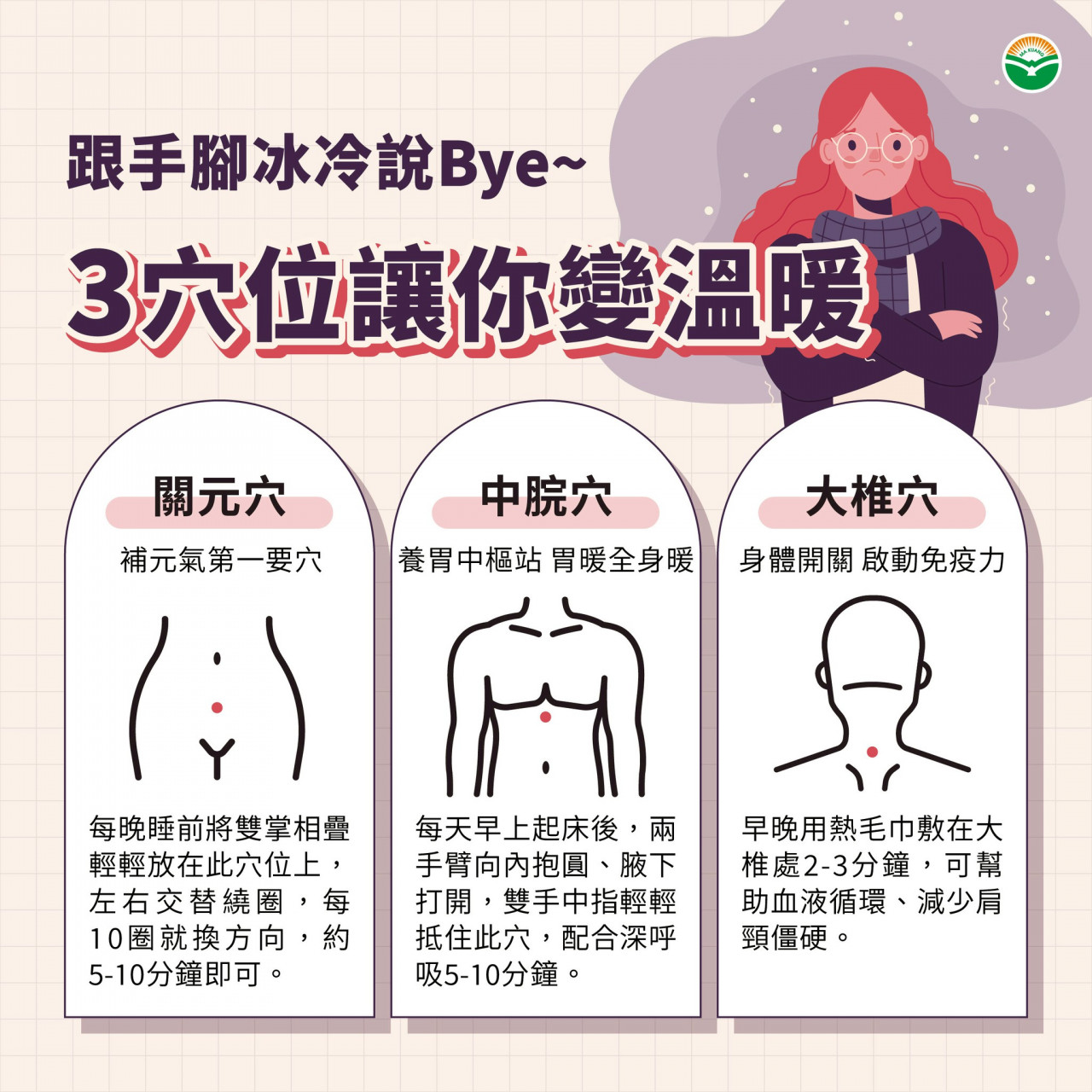 想改善手腳冰冷,可以透過 3個穴位+2個暖身食補,從內而外升溫。