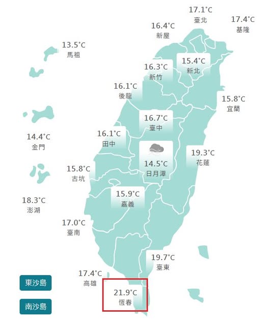 ▲全台低溫,僅恆春仍還在20度以上,(圖/翻攝自鄭明典臉書)