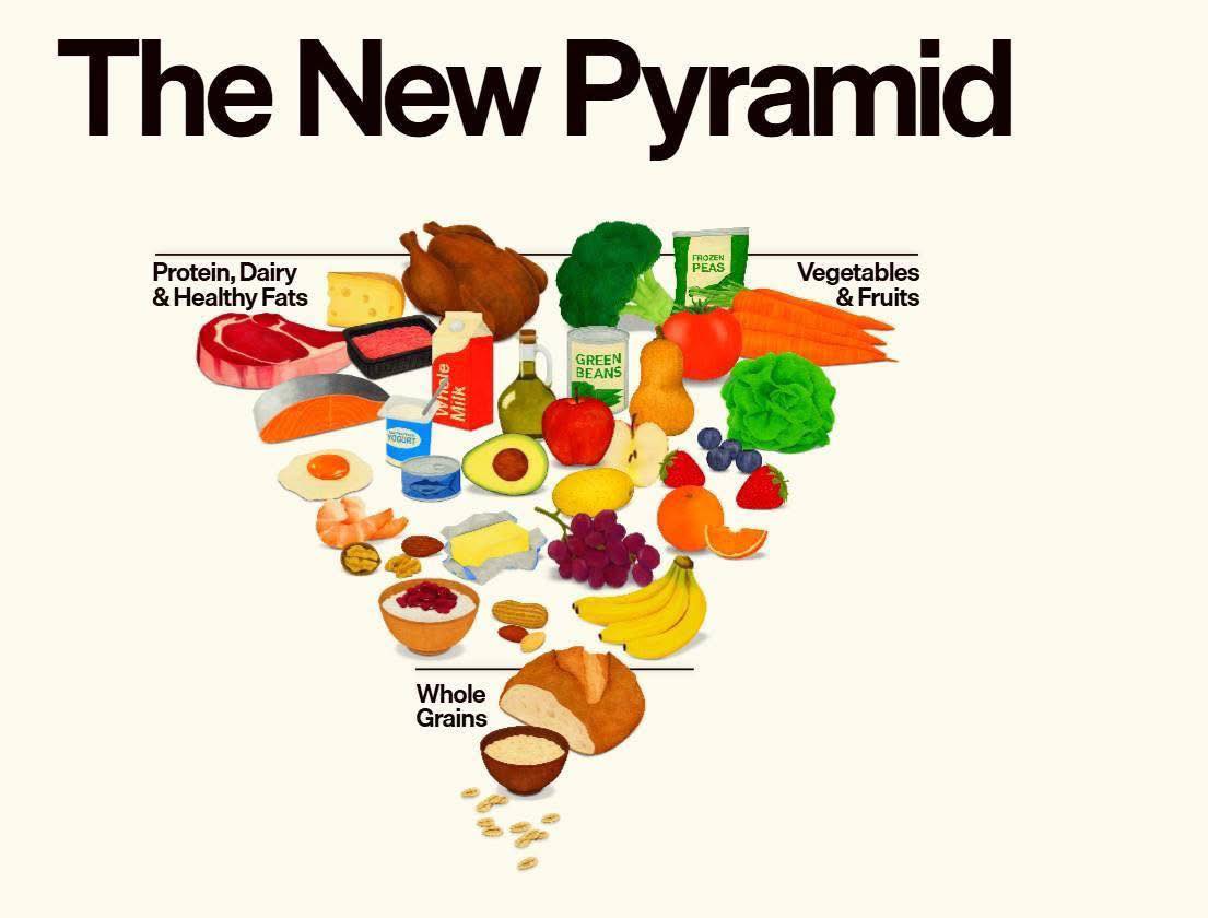 美國農業部近日公布最新《2025-2030 美國飲食指南》,將過去30年大家熟知的食物金字塔翻轉成「倒三角形」,強調「蛋白質優先」、「吃真正的食物」。甚至把過去避之唯恐不及的「飽和脂肪」,如牛油、奶油等,皆列為原型食物中的天然脂肪;連牛奶都鼓勵喝全脂,而非美國心臟學會建議的低脂或脫脂奶。