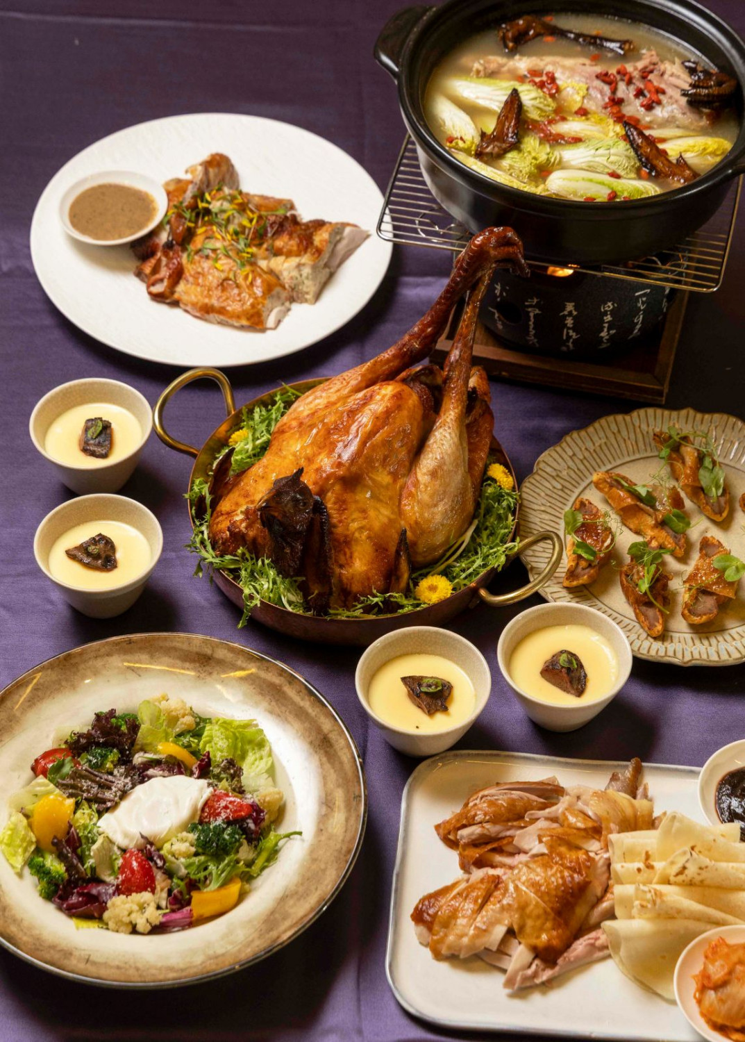主菜「玻璃脆皮雞腿與醃菜烤餅」,雞腿外皮酥脆、肉質多汁,搭配手工製作的烤餅,可包裹雞腿一起食用。醃菜以白菜發酵後,加入韓式辣醬、日本柚子與自製胡麻醬調和,再佐以紅酒燉煮、打製而成的梅子醬,酸香解膩,讓整體風味更立體。