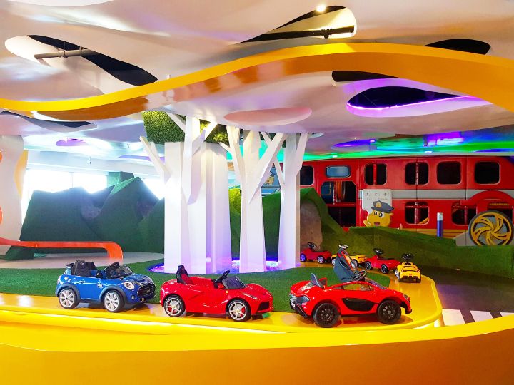 ▲為了讓孩子每次來都有新驚喜,飯店每年設計不同主題,甚至連二樓超跑情境賽道、攀岩牆、釣魚池等等都搬進室內,一站式滿足動靜態遊戲需求!