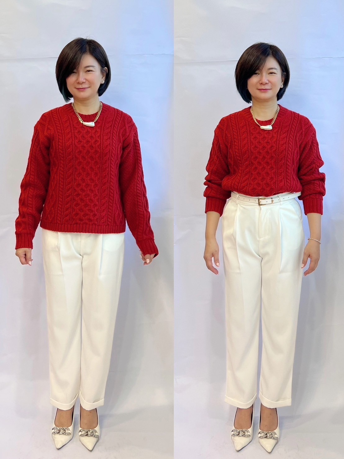 ▲左圖沒有把衣服紮進去,好像該遮的都遮了,可是,有沒有覺得反而顯得有點臃腫呢?