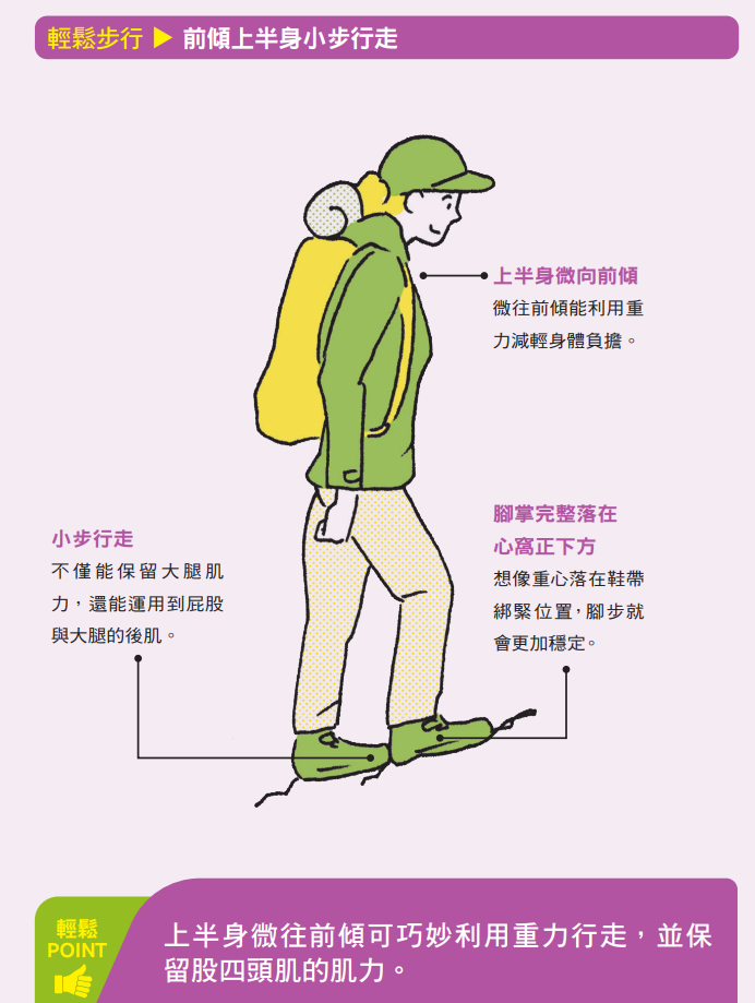 爬山時貫徹節能步行,下山時利用肌力當煞車