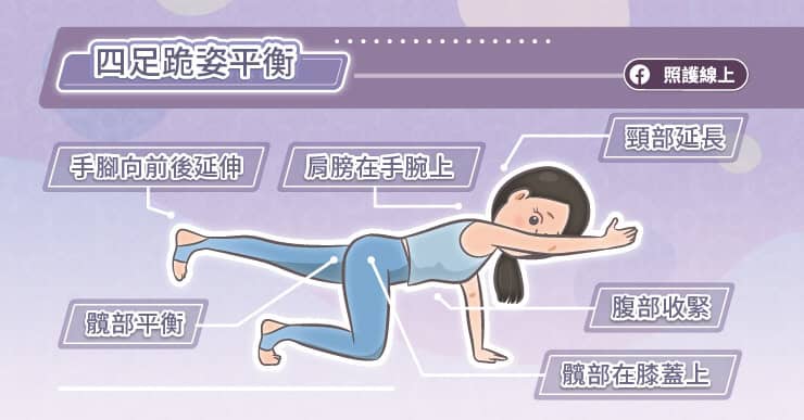 小提醒:如果平衡困難,可以先單獨抬手或抬腿,再慢慢練習手腳同時伸展。