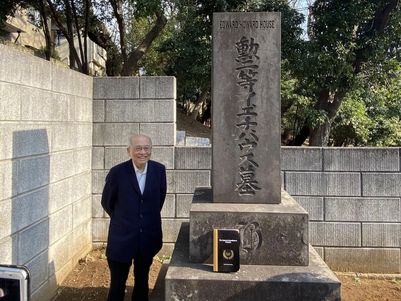 ▲陳耀昌曾將1874年石門戰役寫進作品《頭份之雲》中,2024年因緣際會造訪當年日本隨軍記者Edward House 之墓。(圖/取自陳耀昌臉書)
