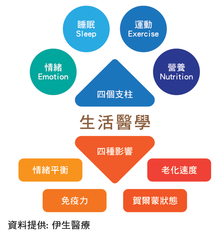 生活醫學的重要性,來自它所處理的不是疾病,而是疾病背後的「生活根源」。鄒為之解釋,生活醫學的核心由四個支柱組成:情緒(Emotion)、睡眠(Sleep)、運動(Exercise)、營養(Nutrition)。這四件事,決定了人的老化速度、荷爾蒙狀態、免疫力與情緒平衡。